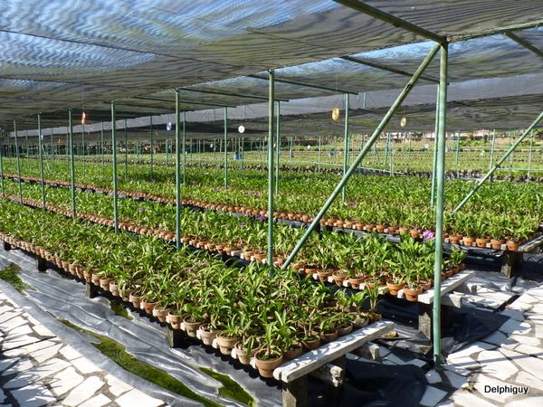 Thông thường thì các chậu hoa lan sẽ được đặt trên các sạp dài được làm bằng khung gỗ hoặc kin loại để giúp thông thoáng phần rễ và giữa các cây với nhau. Phần mặt đất có thể phủ đêm đá nhỏ, sỏi hoặc cát để phòng cỏ dại mọc lên cũng như hơi lạnh, ẩm từ mặt đất bốc lên.